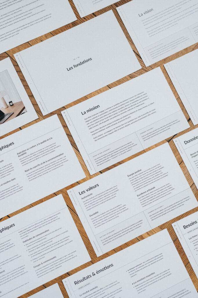 Des bases solides pour communiquer, grâce à une stratégie de marque précise, pensée pour éclairer vos choix et simplifier vos décisions futures.