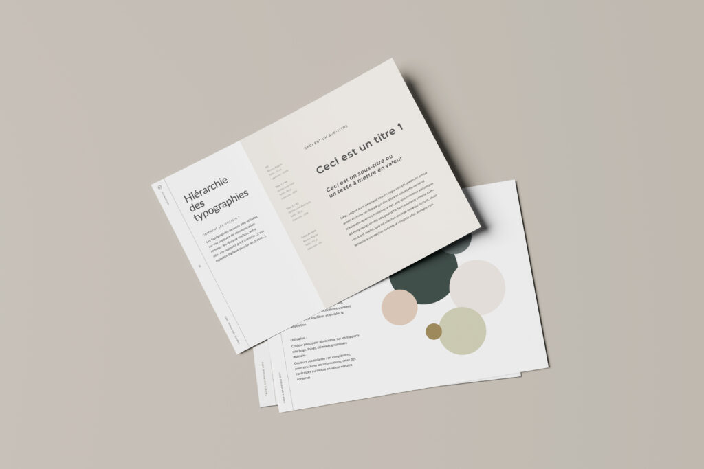 Le guide d’utilisation est justement là pour vous simplifier la vie : il explique comment utiliser votre identité, avec des exemples concrets. Vous disposez aussi de fichiers bien rangés et d’un dossier typographique prêt à l’emploi, pour que votre équipe ou vos prestataires puissent prendre le relais facilement.