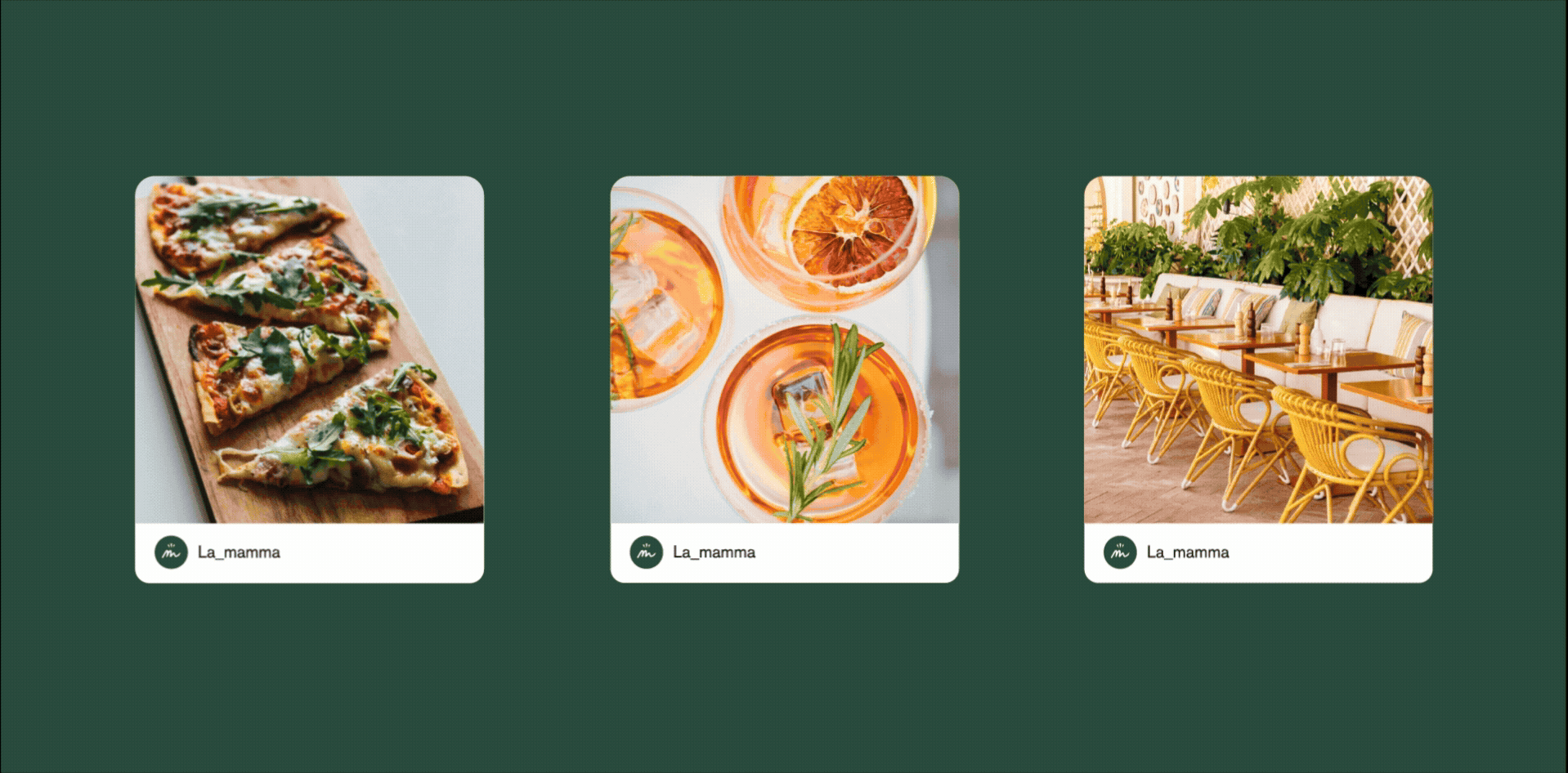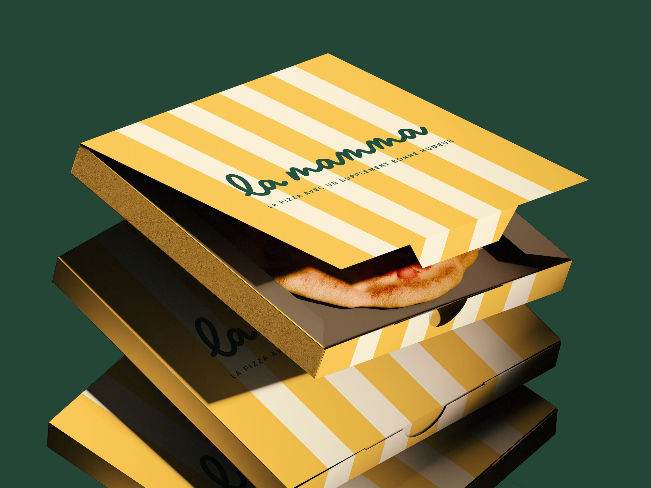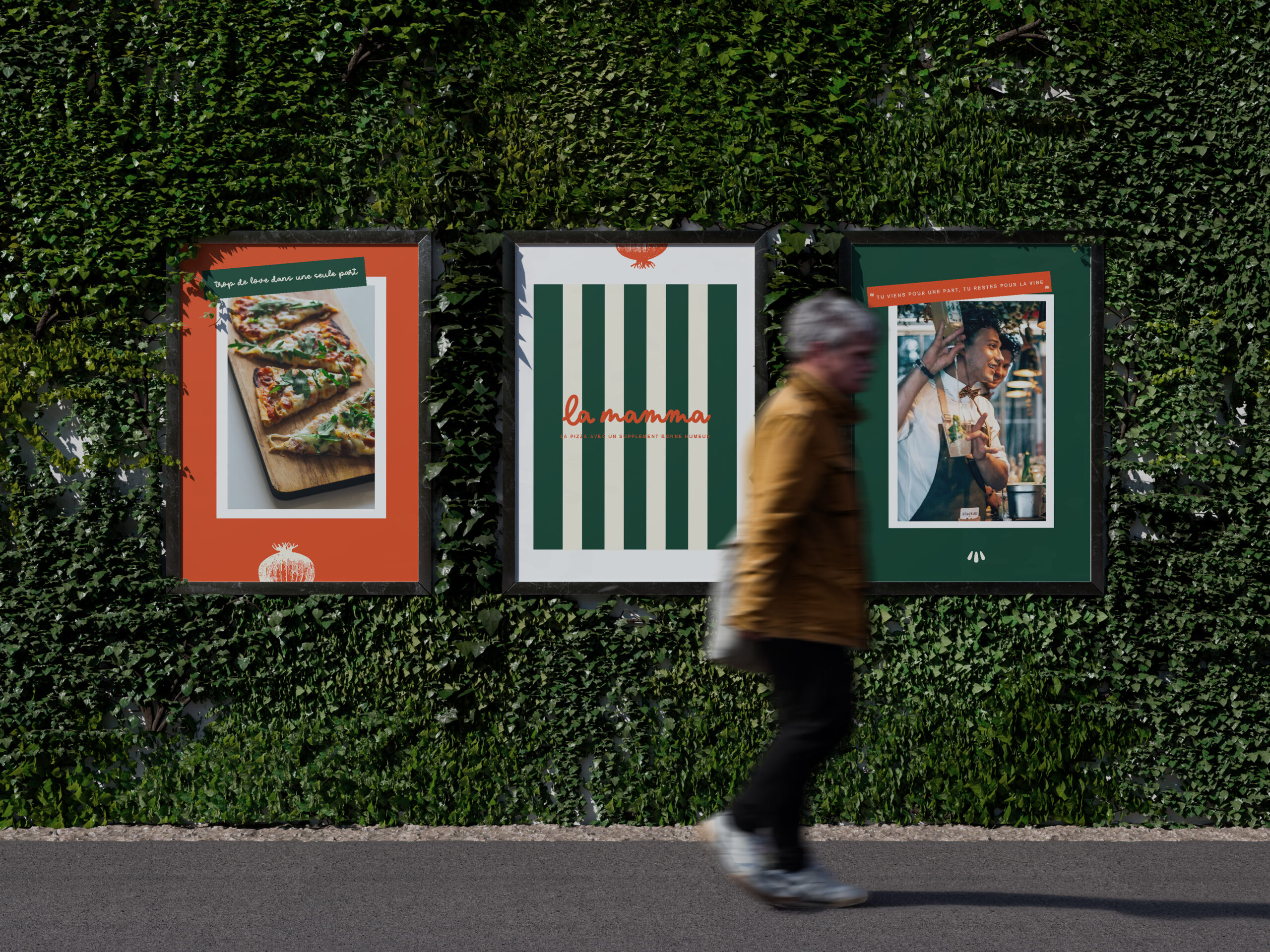 Pour La Mamma, on a imaginé une identité colorée, festive et chaleureuse, loin des codes figés. La palette s’inspire directement de l’univers italien et de la cuisine : rouge tomate, vert basilic, crème, jaune solaire, touches de menthe et de vert. Le logo, à la typographie ronde et manuscrite, renforce cette sensation d’accueil et de générosité.