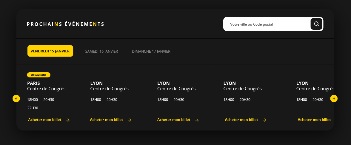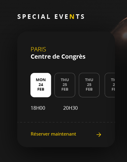 Nous avons mise en place sur le site une synchronisation entre la réservation des tickets (avec WithEvent, un système externe) et l’affichage des paiements en ligne, permettant la vente de billets directement sur le site. Les réservations se font simplement, sans rupture de parcours.