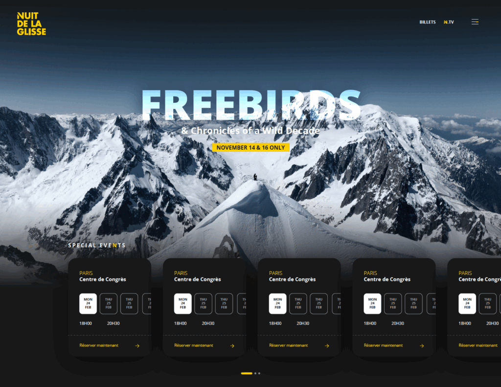 Cette collaboration s’est étendue jusqu’au site du réalisateur Thierry Donnard, afin de garantir une continuité visuelle et narrative autour de l’univers Nuit de la Glisse.